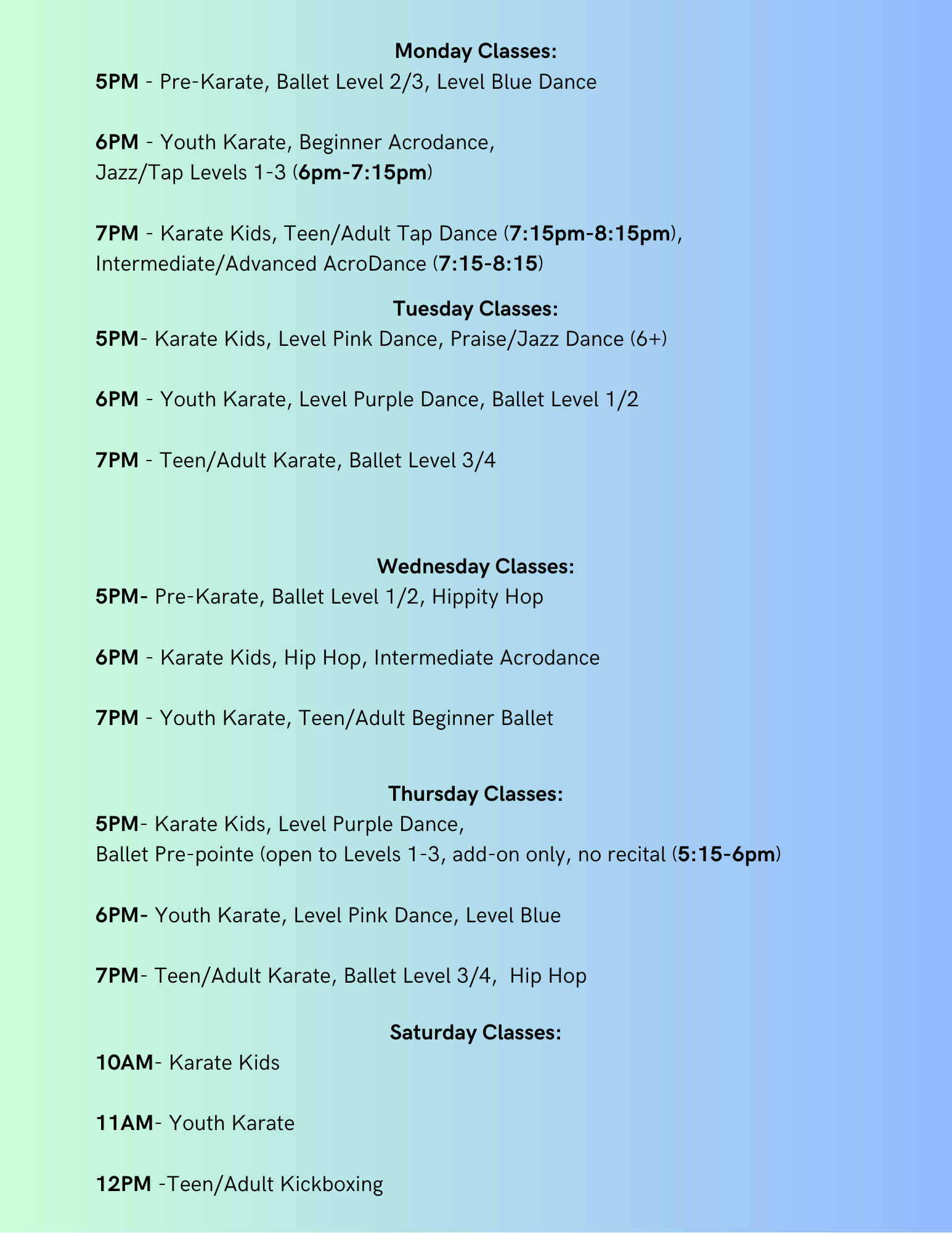 For Class Descriptions, refer to the "Dance" and "Karate" tabs or call/email us.